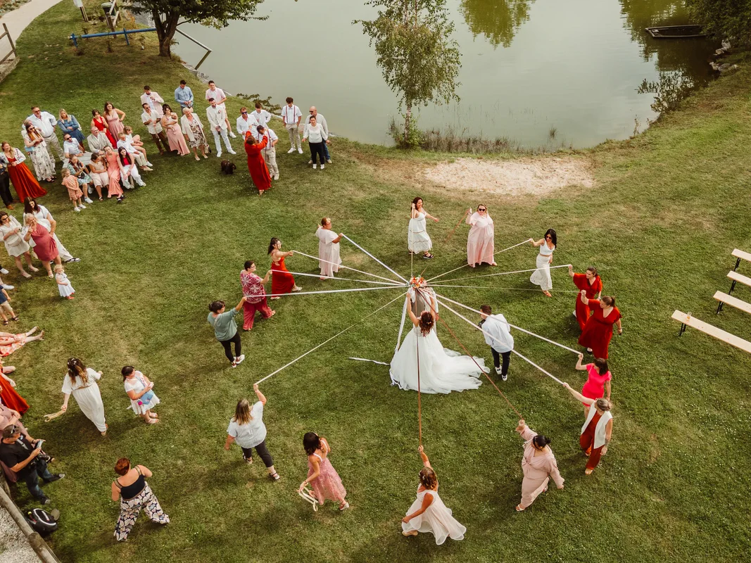 Le drone offre une perspective qu’aucun autre appareil ne peut donner. Une vue du domaine de réception, une photo de groupe aérienne, un survol du cortège : le résultat est toujours impressionnant.