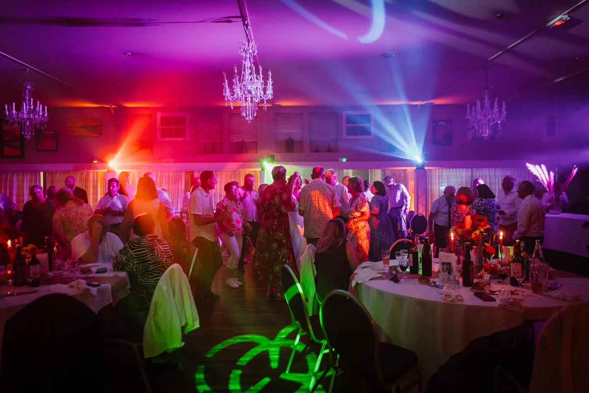 La soirée, c’est quand les masques tombent et que tout le monde danse. Les photos de nuit ont une atmosphère particulière : chaudes, vivantes, festives.